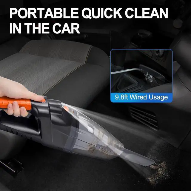 Portable Vacuum for Car: This vacuum for car 80w high-power, rechargeable is designed to tackle tough cleaning tasks with ease. There' s also a 9.8 footer cigarette lighter line, which can meet the requirements of cleaning your entire vehicle.