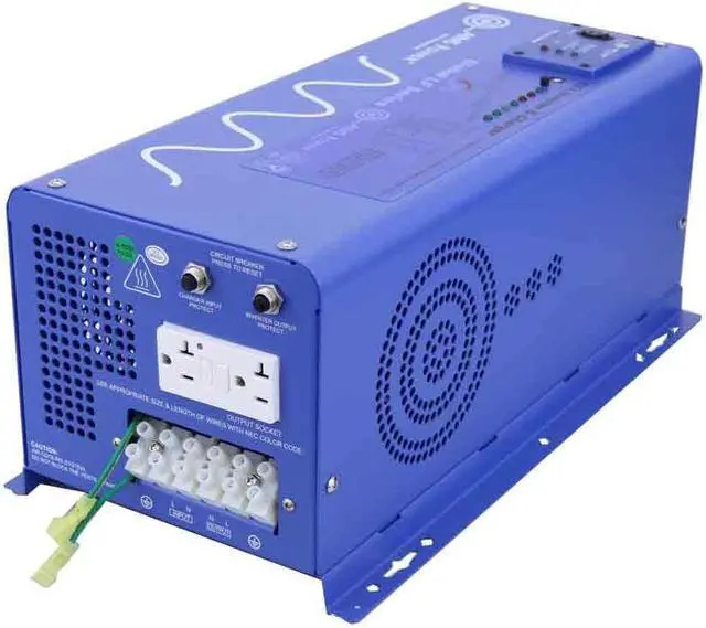 The 2000 watt 12 volt low frequency AIMS Power inverter charger transforms DC (direct current) power, stored by batteries, into AC (alternating current) electricity that can be used to run your various tools and appliances. This inverter also has a built in AC-to-DC battery converter charger, which allows users to recharge their battery bank from an AC source such as a fuel-powered generator, shore power or a regular outlet at home. The built in battery charger features a seven type battery selector and 3 stage charging, for safely and effectively charging your battery source. Use this product for renewable solar, off-grid, mobile and emergency backup power applications anywhere that uses 110 or 120 volts of alternating current. This product also has auto frequency detection that allows users to operate at either 50 or 60 hertz.
