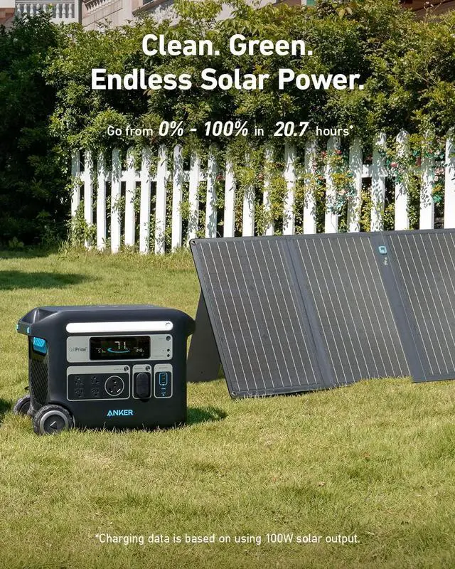 The solar input supports a 11-60V solar charger with an XT-60 connector. If you use a 11-32V charger, the current supports 10A max while a 32-60V charger supports 20A max. We recommend using Anker 531 Solar Panels (200W) for better compatibility.