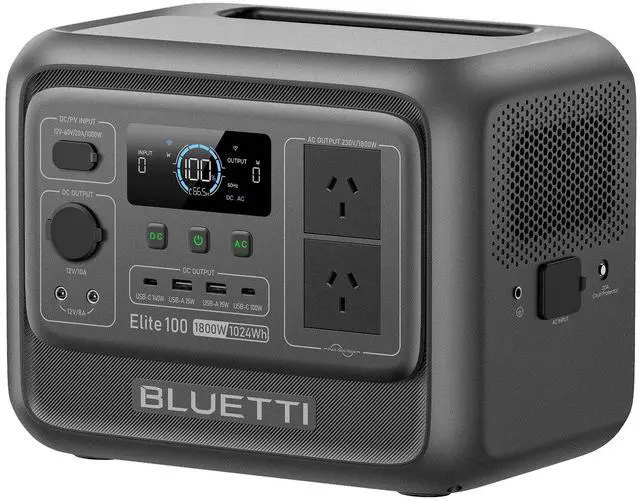 The BLUETTI Elite 100 V2 portable power station delivers 1024Wh capacity and 1800W AC output, making it perfect for camping, home backup, and off-grid adventures. With 11 output ports, fast 70-minute charging, and a compact 25 lb design, its easy to carry and store. Enjoy reliable UPS backup during outages and quiet operation at just 30dB. Compatible with solar panels for clean, renewable charging anywhere.
