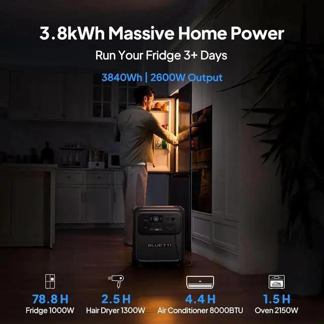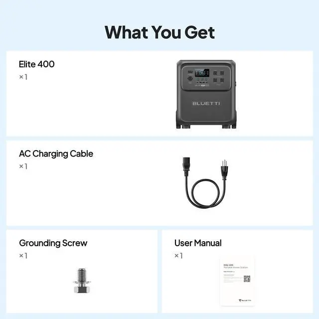Meet the BLUETTI Elite 400 Portable Power Stationbig power that actually moves with you. Featuring a 3840Wh LiFePO4 battery, 2600W AC output with 3900W surge, fast charging, and a built-in wheeled design, this portable power station handles home backup, power outages, and daily use with ease. With multiple AC and DC ports and 15ms UPS backup, it keeps essentials running smoothlybecause losing power shouldnt mean losing your routine.