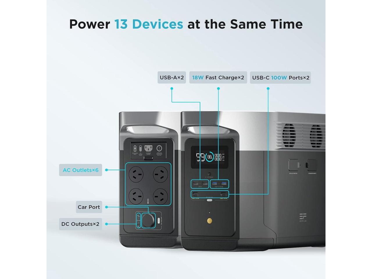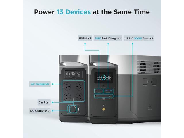 - 2-6kWh expandable capacity with DELTA Max Smart Extra Battery or DELTA 2 Max Smart Extra Battery.