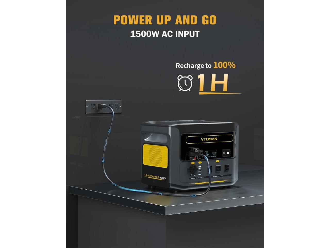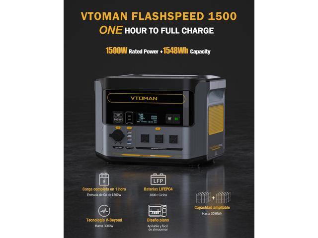 VTOMAN FlashSpeed 1500 Portable Power Station 1500W (3000W Peak), 1548Wh Backup LFP Battery Generator, Expandable To 3096Wh, Recharge 0-100% within 1 Hour, for Electric Backup & Blackout Emergency