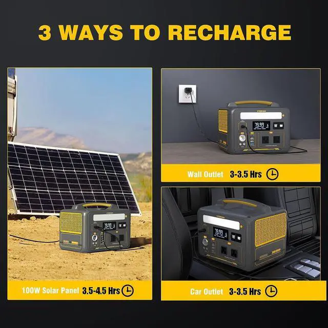 Recharge to 80% within 2.7 HrsVTOMAN Jump600X power station features a DC5521( 5.5 mm* 2.1 mm) input port that supports 100W Max input power. It can be recharged by three ways: 1)Recharging by 100W