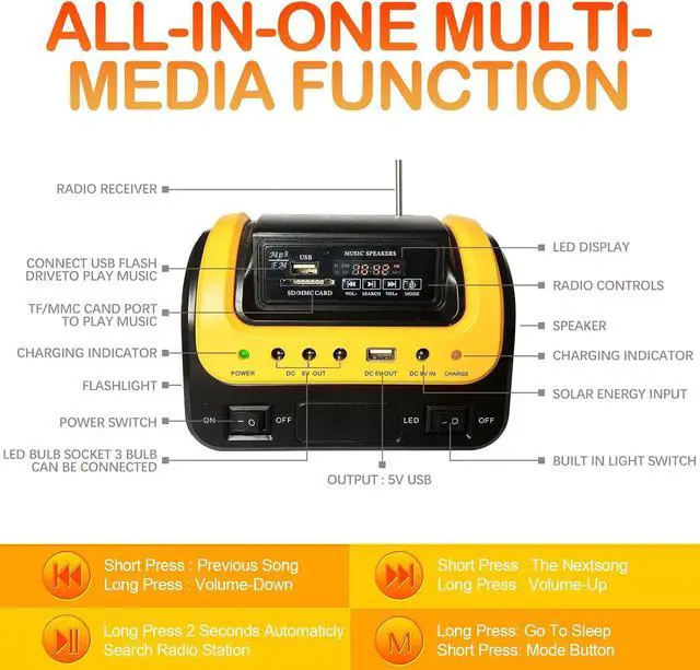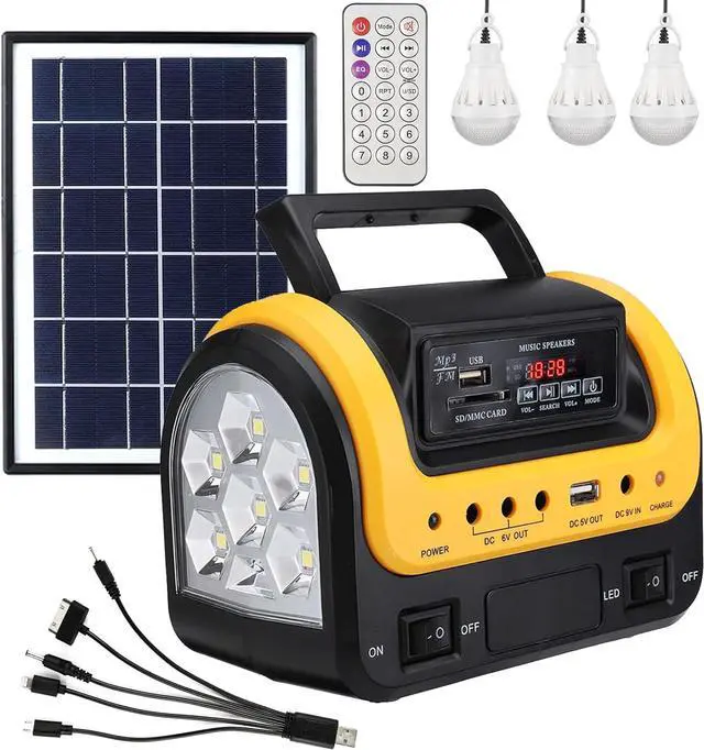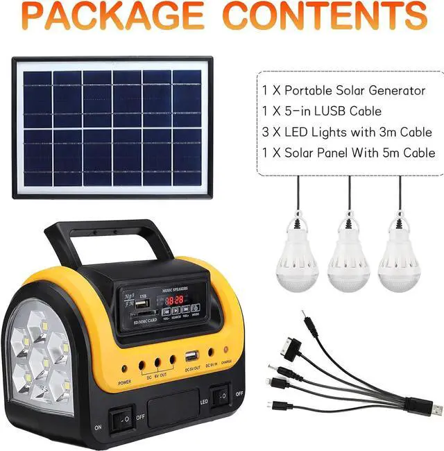 MULTI-PURPOSE SOLAR GENERATOR - This portable generator has built-in LED flashlights and 3 LED lamps with individual switch&3m cable which brings light with low power consumption. Equipped with DC/USB outlets, used for charging small-capacity devices such as mobile phones, e-books, game consoles, cameras, MP4, etc. Perfect emergency power backup for home, travel, camping.
