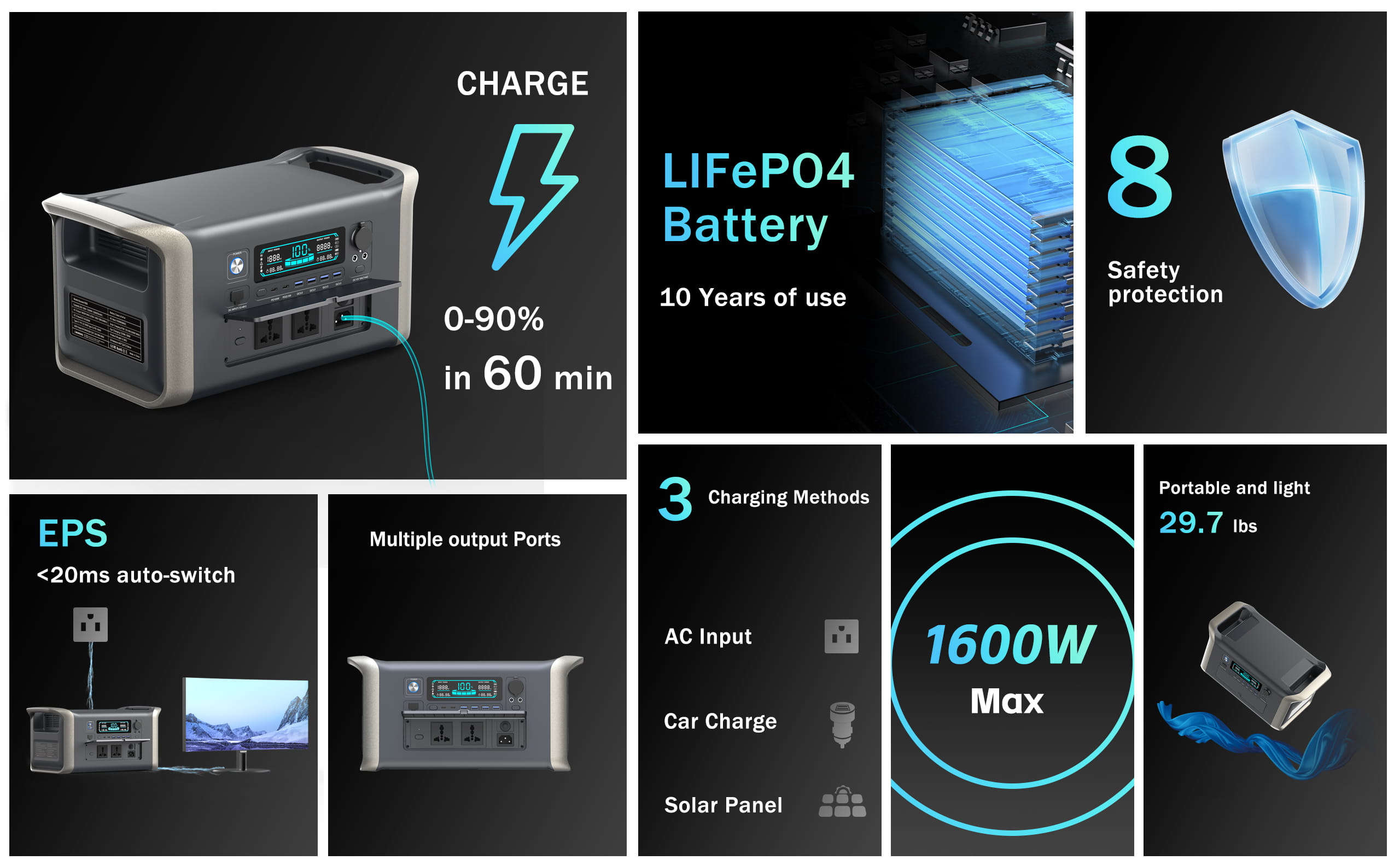 Fast Charging: Thanks to its rapid charging technology, you can fully charge the power station in just one hour, saving you valuable time and keeping you powered up when you need it most.