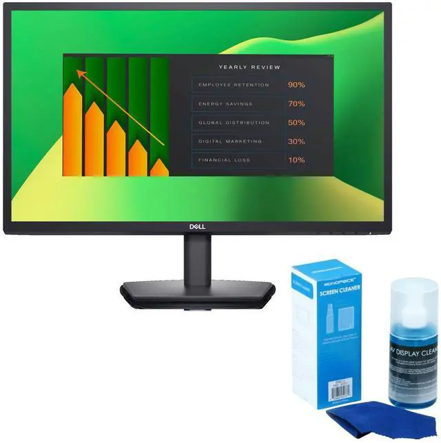 Functional, space-saving designEasily connect to both modern and legacy systems with VGA and DP ports for added flexibility in your workspace setup. Clear the clutter with a compact stand and improved cable management system that hides cables while maintaining a clean and professional look. The slim bezel design adds a modern aesthetic, blending seamlessly into any work environment.