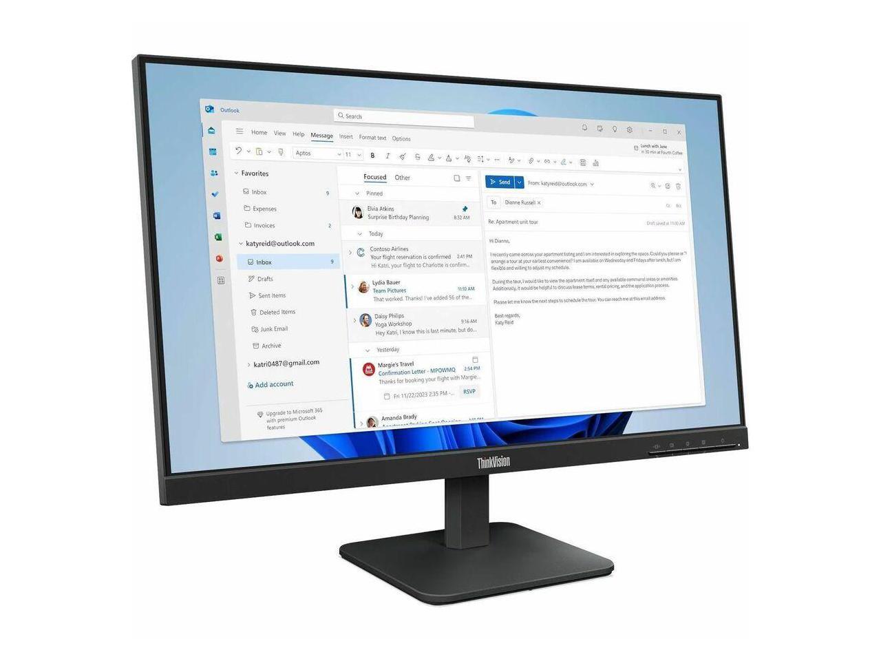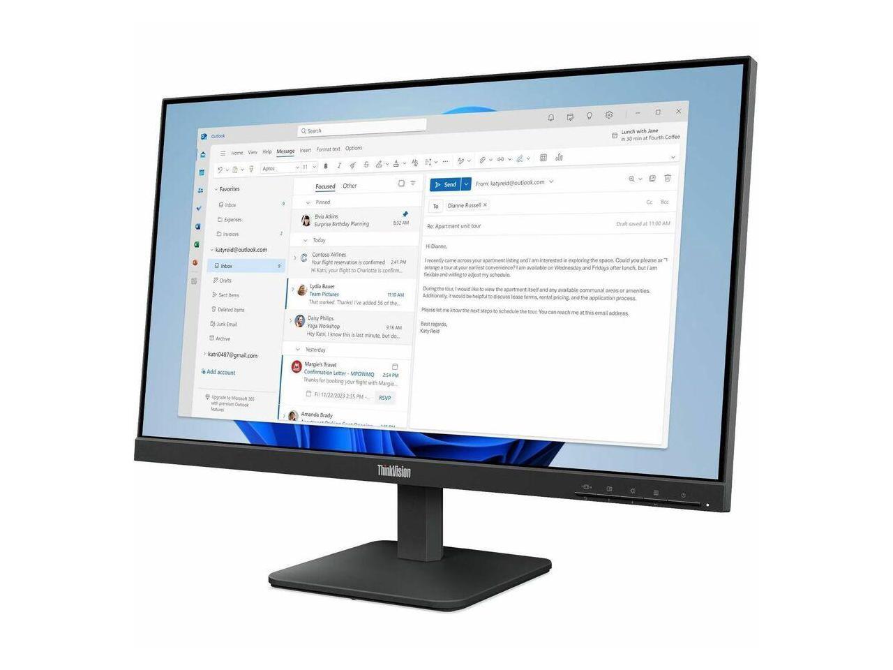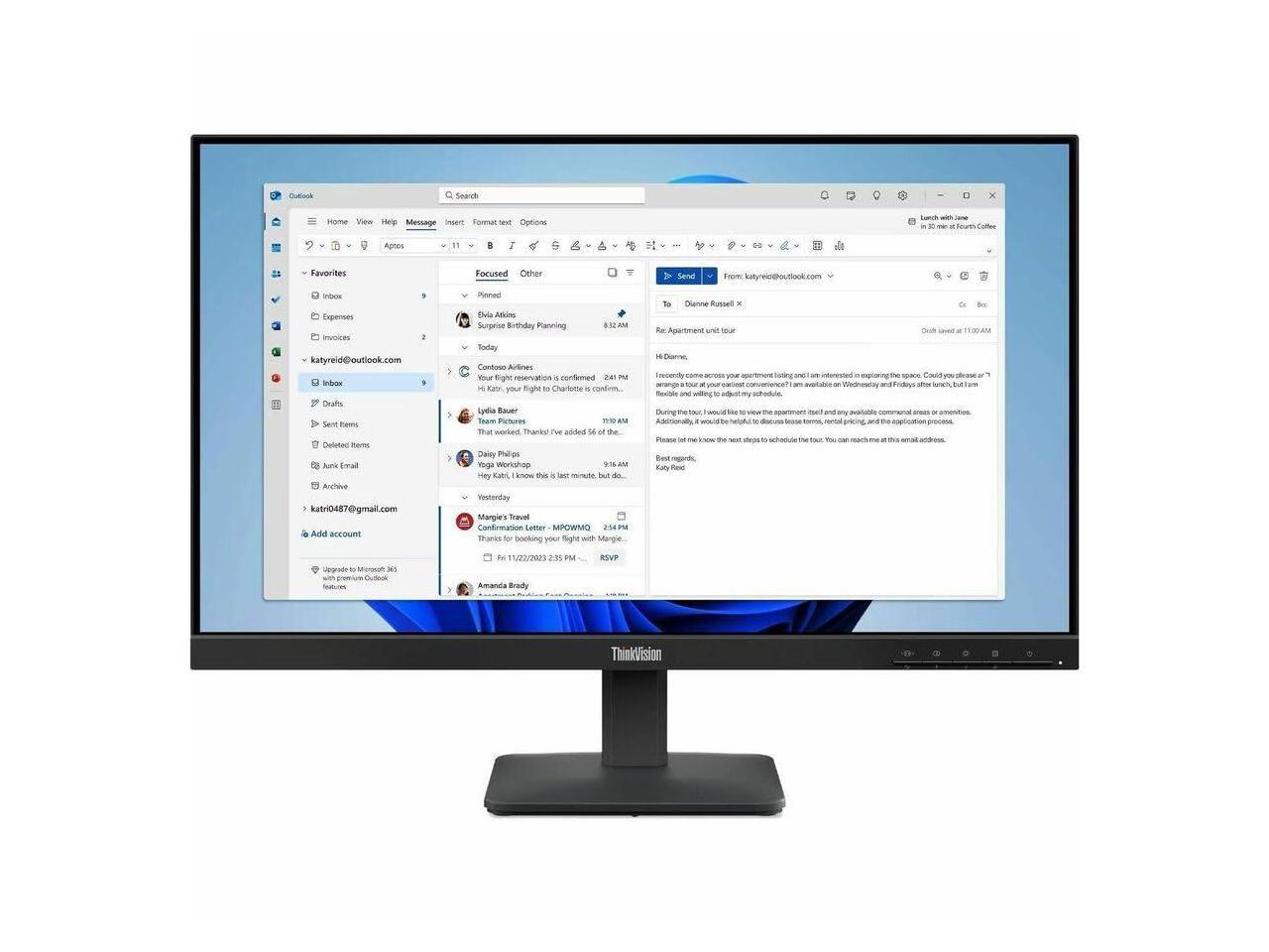 Lenovo ThinkVision S24-4e 24" Class Full HD LED Computer Monitor - 16:9 - Raven Black - 23.8" Viewable - In-plane Switching (IPS) Technology - WLED Backlight - 1920 x 1080 - 16.7 Million Colors - 250