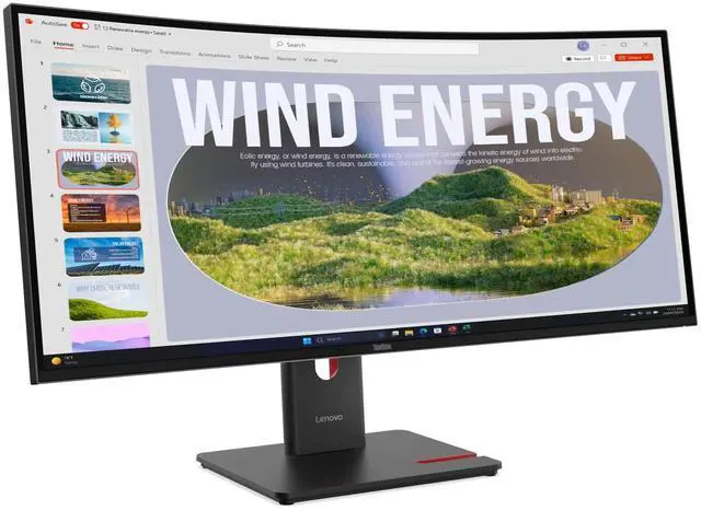 he Lenovo ThinkVision T34D40 delivers a sweeping 34inch ultrawide canvas with a crisp 3440 × 1440 WQHD resolution, ideal for multitasking, creative work, and immersive viewing. Its VA panel produces deep contrast and rich color, supported by a smooth 120Hz refresh rate and 4ms response time for fluid motion. With 350nit brightness, the display stays clear and vibrant in a range of lighting environments. Designed for productivity and comfort, this curved monitor expands your workspace while keeping visuals sharp and engaging.