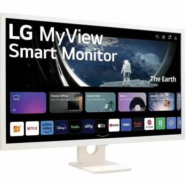 DISPLAY | Work Smart, Play SmartLG MyView Smart Monitor is designed for multitasking while you work, play and watch. Connect the 32" display to a laptop, desktop or gaming console to immerse yourself in your work or games. Or, with the display's LG webOS built-in, you can watch favorite shows from your favorite streaming apps. Vivid Color with IPS and FHD ResolutionSee the quick response of an IPS Display. At 1920x1080 resolution, LG's FHD IPS Display features vibrant color and clarity at wide angles. Work through your projects with ease and efficiency.