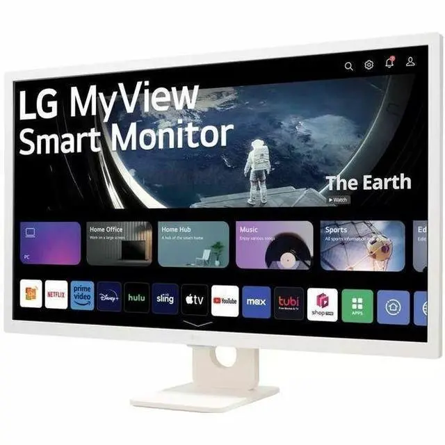 DISPLAY | Work Smart, Play SmartLG MyView Smart Monitor is designed for multitasking while you work, play and watch. Connect the 32" display to a laptop, desktop or gaming console to immerse yourself in your work or games. Or, with the display's LG webOS built-in, you can watch favorite shows from your favorite streaming apps. Vivid Color with IPS and FHD ResolutionSee the quick response of an IPS Display. At 1920x1080 resolution, LG's FHD IPS Display features vibrant color and clarity at wide angles. Work through your projects with ease and efficiency.