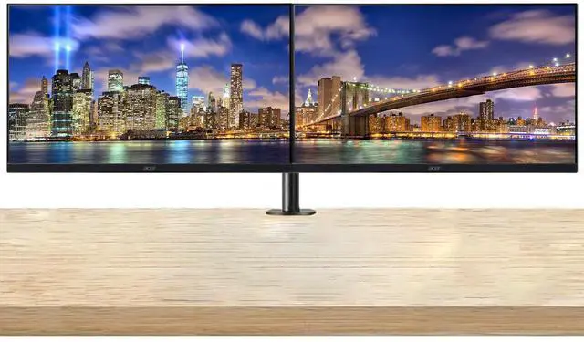 The desk mount stand allows you to free up valuable desk space by securely mounting your monitors. Enjoy an organized workstation without compromising on screen size or functionality.