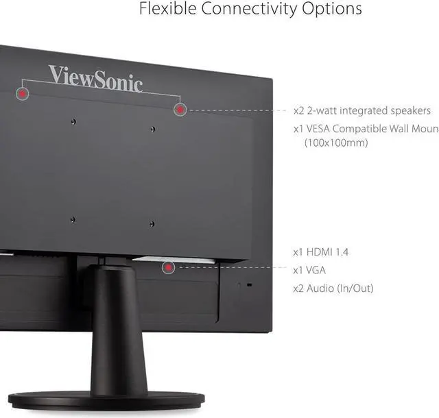 Dual ViewSonic VA2247-MH - 1920 x 1080 - 16.7 Million Colors - FreeSync - 250 Nit - 5 ms - 75 Hz Refresh Rate - HDMI - VGA - 2 x 2W Speakers