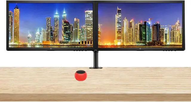 Bundle includes 2-pack HP V24 24 TN full HD LED backlit LCD monitors, dual monitor mount, HDMI/VGA ports, FreeSync, & Mini Glow speaker.