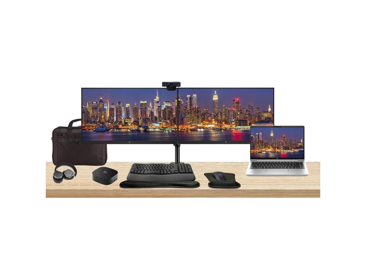 HP ProBook 445 G10 14" Ryzen 5, 8GB RAM, 256GB SSD, Bundle with 2 x EliteDisplay E24 24" Monitors, Dual Stand, USB-C Dock, MK670 Wireless Keyboard and Mouse, Gel Pad, Webcam, Headphones, Bag
