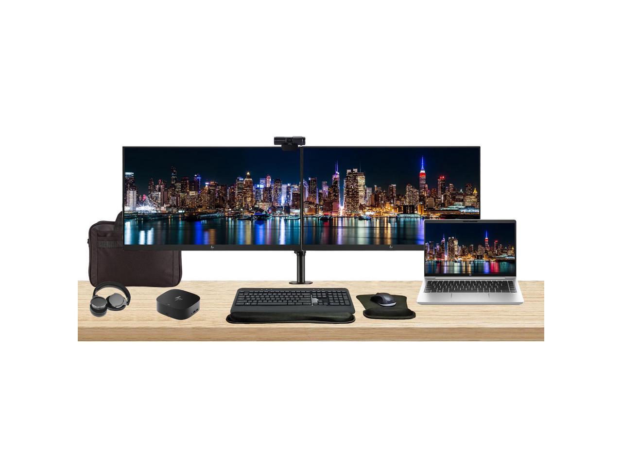 HP ProBook 440 G10 14" i5, 16GB RAM, 256GB SSD, Bundle with 2 x EliteDisplay E27 27" Monitors, Dual Stand, USB-C Dock, MK540 Wireless Keyboard and Mouse, Gel Pad, Webcam, Headphones, Bag