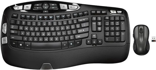 MK670 - Ergonomic Wave Design - USB Wireless RF 2.40 GHz - English - Black - Optical Mouse - 7 Button - Scroll Wheel - Multimedia Media Player, Email, Internet, Calculator, Volume Control