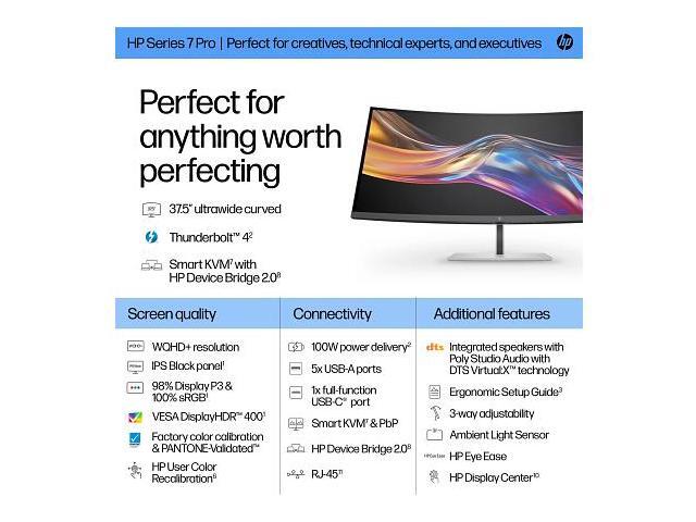 HP Series 7 Pro 37.5 inch WQHD+ Thunderbolt 4 Monitor - 738pu 37.5" WQHD+ (3840