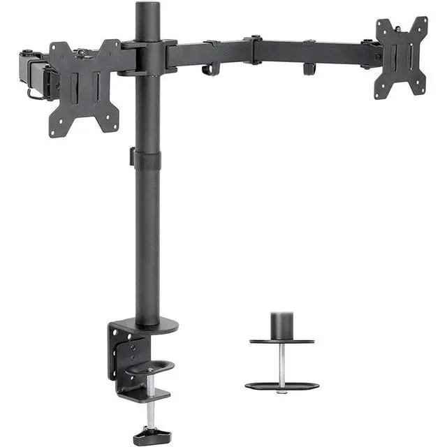 This dual-monitor desk mount supports two screens with 75x75 mm or 100x100 mm mounting.