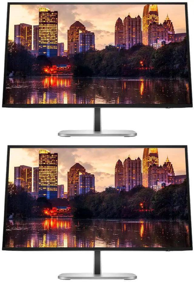 Dual HP 527pq - In-plane Switching (IPS) Technology - Eyesafe - 3 Sided Borderless - 2560 x 1440 - 16.7 Million Colors - 350 - 5ms - 100Hz Refresh Rate - HDMI - DisplayPort - USB Hub - Mount Compatible