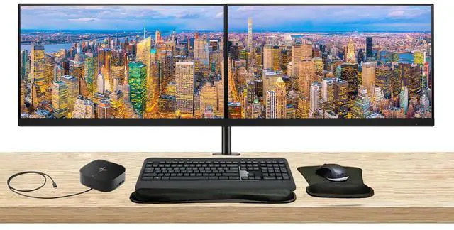 Upgrade your workspace with this complete dual HP Series Pro monitor bundle-featuring two premium displays on a sleek desk mount, a USB-C multiport dock for clean, single-cable connectivity, and an MK540 wireless keyboard and mouse combo with a wrist rest and gel pad for all-day comfort and productivity.