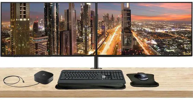 Upgrade your workspace with this complete dual HP Series Pro monitor bundle-featuring two premium displays on a sleek desk mount, a USB-C multiport dock for clean, single-cable connectivity, and an MK540 wireless keyboard and mouse combo with a wrist rest and gel pad for all-day comfort and productivity.