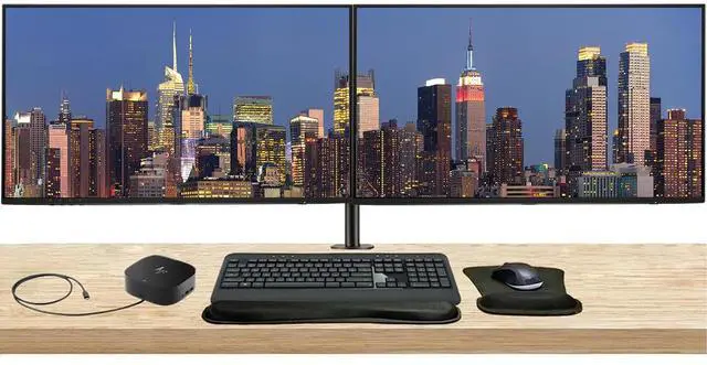 Upgrade your workspace with this complete dual HP Series Pro monitor bundle-featuring two premium displays on a sleek desk mount, a USB-C multiport dock for clean, single-cable connectivity, and an MK540 wireless keyboard and mouse combo with a wrist rest and gel pad for all-day comfort and productivity.