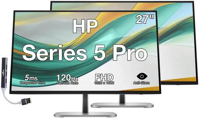 HP Series 5 Pro 27" FHD IPS Monitor With 5ms Response Time, Anti Glare, Flicker Free, Swivel, Pivot, VESA Mount (100mm), Displayport, HDMI & Dockztorm USB Port Expander, Black Color 2 Pack