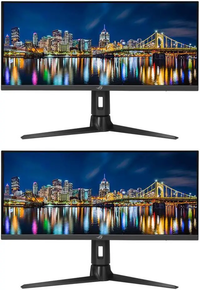 Dual Asus ROG Strix XG309CM - IPS - 2560 x 1080 - Extreme Low Motion Blur - FreeSync Premium - Ultra-Low Blue Light - Eye Care - HDR10 - 110% sRGB - 16.7 Million Colors - 300 Nit - 1 ms - 220 Hz Refresh Rate - HDMI - DisplayPort - USB-C - 2 x 2W Speakers