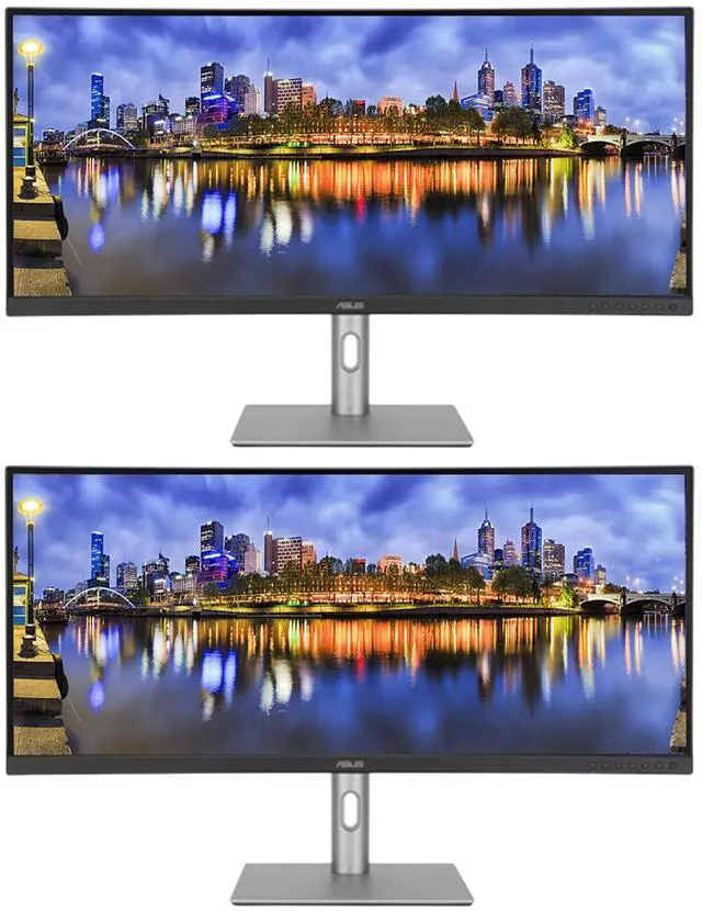 Dual Asus PA34VCNV - IPS - 2K/UW-QHD - 3440 x 1440 - 100% sRGB - HDR10 - ProArt Preset - ProArt Palette - Flicker free - Low Blue Light - 1.07 Billion Colors - 5 ms - 60 Hz Refresh Rate - USB-C with 96W PD - HDMI - DisplayPort with Daisy Chain- USB Hub - Ethernet - 2 x 2W Speakers