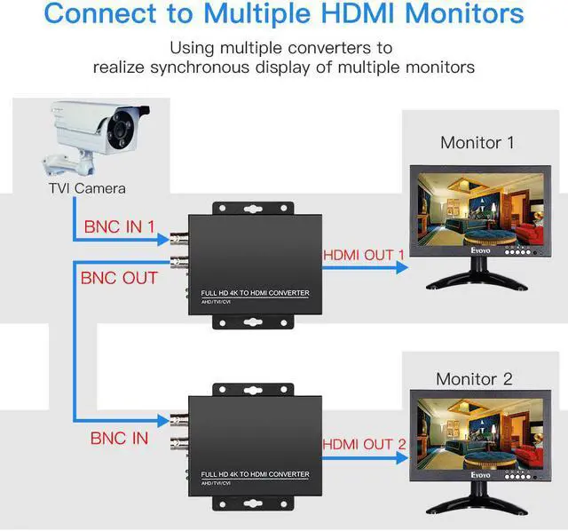4. Using multiple converters support realize synchronous display of multiple monitors.