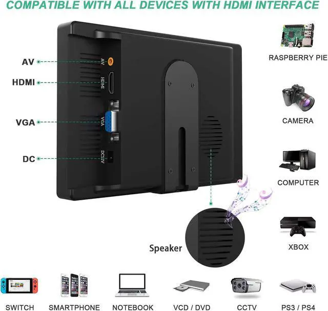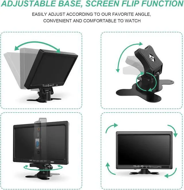 Operate mode: Button operation and remote control The package comes with an adhesive tape, which can help to fix anywhere you want. If there is something confused you or the link you need to download files like user manual, assemble, the image and drivers, please feel free to keep in touch with us. Package includes 1* 7-inch Digital IPS Receiver Car/PC Monitor 1* IR Remote Controller 1* 12V 1A Power supply 1* HDMI Cable 1* Rotatory Stand 1* Adhesive Tape 1* AV Cable