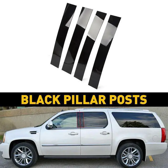 Glossy Black Pre - cut Pillar Posts Molding Protector Trims for 2007-2014 Cadillac Escalade (4 - Piece Set)