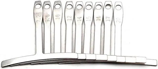 Radius gauges come in 9 sizes: 7.25 9.5 10 12 14 15 16 17 20