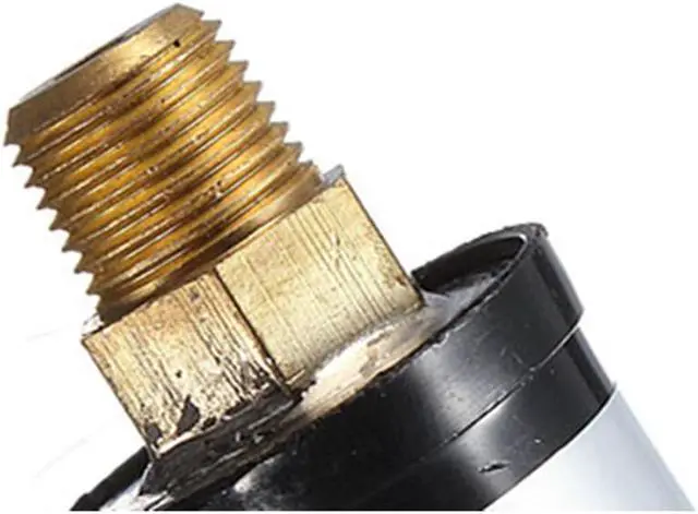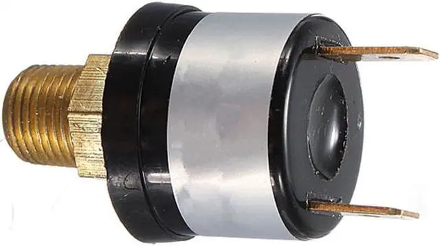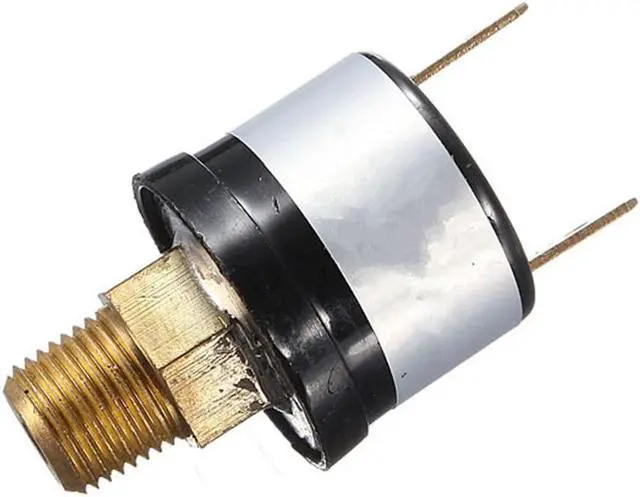 This pressure switch regulates the air pressure. The threaded side is 1/8" NPT Male. The pressure switch gets wired to the compressor and will automatically turn it on when the tank's pressure is below 90 PSI and turn it off when pressure reaches 120 PSI.