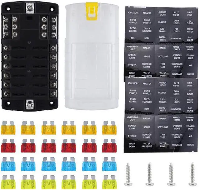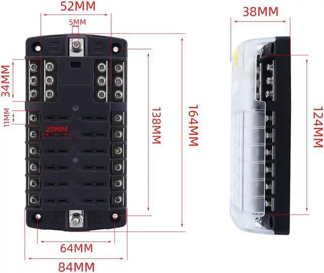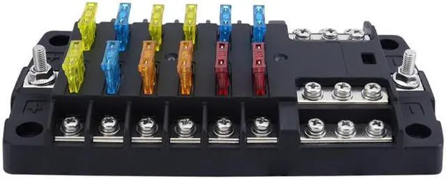 This 12 Circuit Fuse Block widely used in Car, Truck, Boat, Tankers, Marine, SUV, Yacht, RV, Van, Ships etc. Each fuse of fuses box can be connected to any circuit of electrical appliances. For example: car dome light, auto headlight, width lamp, fog lamp, warning lights, car refrigerator, car charger and car fan, car TV.etc.