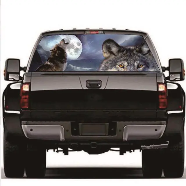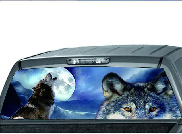 Wolf & Moon Rear Window Sticker Perforated Window Graphic Sticker for Truck SUV 147x46CM