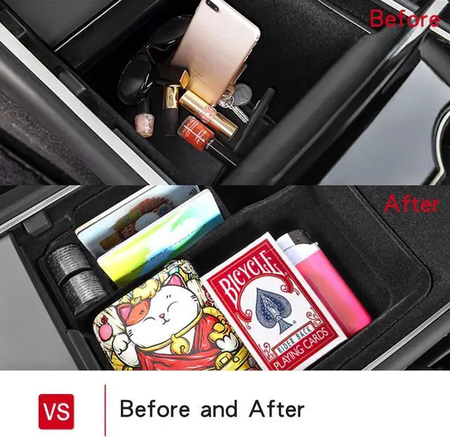 Premium Design: The center console box has been custom-cut specifically for 2021 model 3 and Model Y, NOT for 2016-2020 Model3/Y. With a design for personal storage, could easily store your stuff in the armrest hidden space.