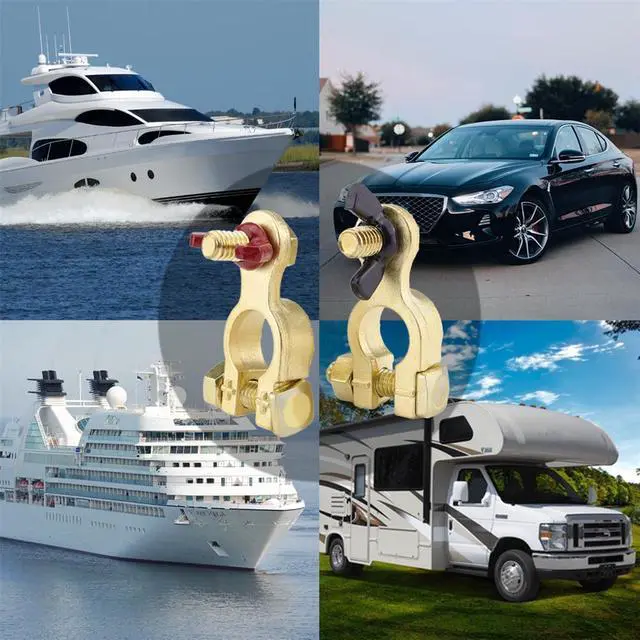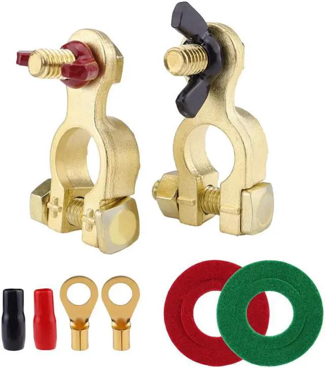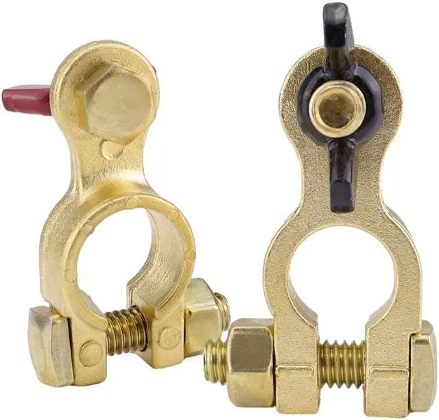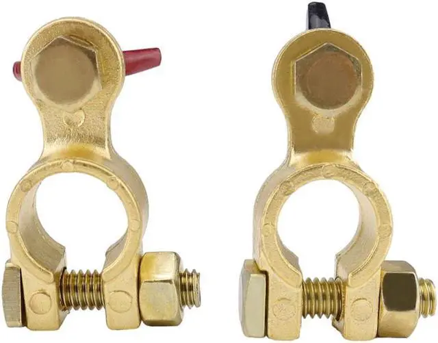 2pcs Solid Brass Battery Terminal Connector Top Post End Clamps Set for Car Marine