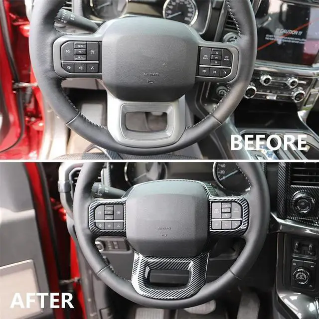 Carbon Fiber Steering Wheel Cover Trim For Ford F150 F-150 2021-2024