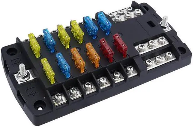 This 12 Circuit Fuse Block widely used in Car, Truck, Boat, Tankers, Marine, SUV, Yacht, RV, Van, Ships etc. Each fuse of fuses box can be connected to any circuit of electrical appliances. For example: car dome light, auto headlight, width lamp, fog lamp, warning lights, car refrigerator, car charger and car fan, car TV.etc.