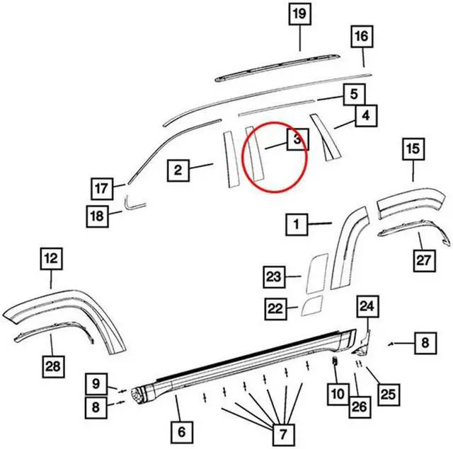 LH Rear Door Pillar Window Trim Applique B