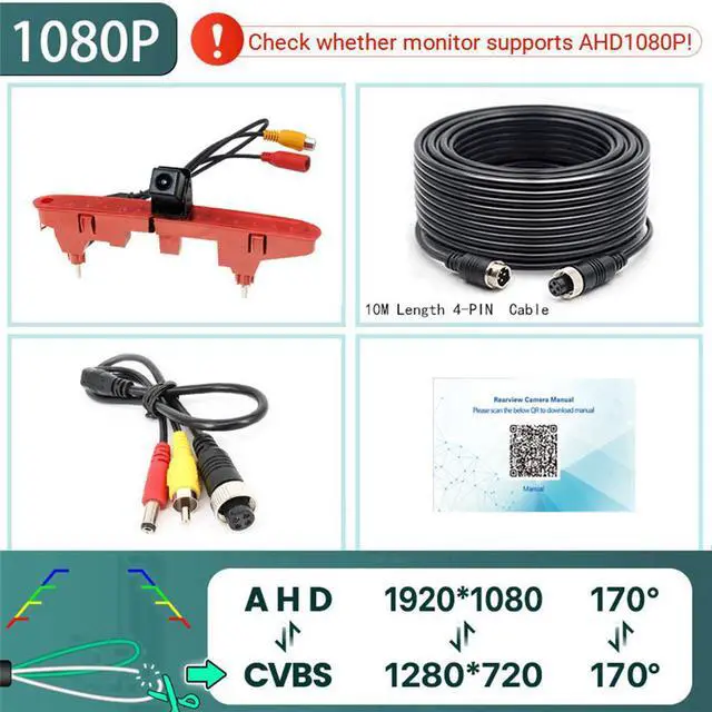 AHD 1080P 3rd Brake Light Reversing Camera Rear Backup Camera For Citroen Berlingo Peugeot Partner II 2008-2021