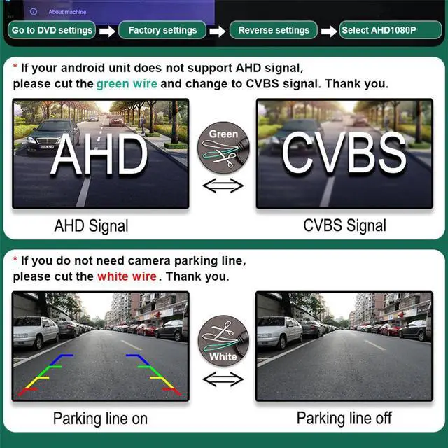 2. If your monitor can not support AHD video signal, please Cut the green wire change to CVBS video signal, please re-connect all cables