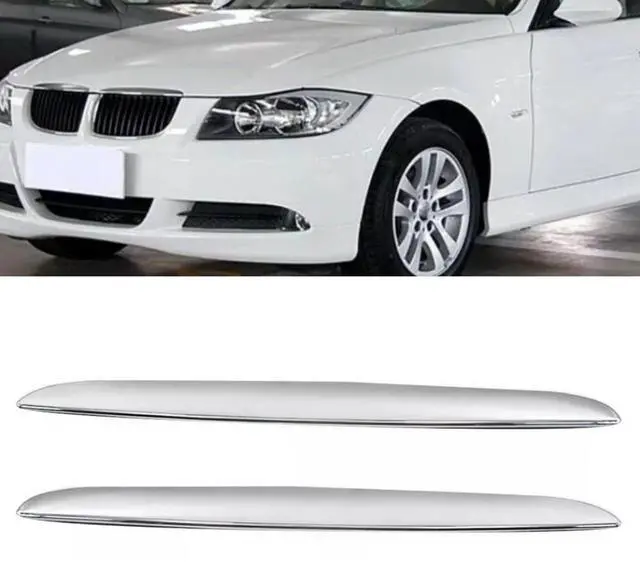 2Pcs Front Hood Cover Chrome Trim Above Grille For BMW 3 Series E90 E91 2006-2008