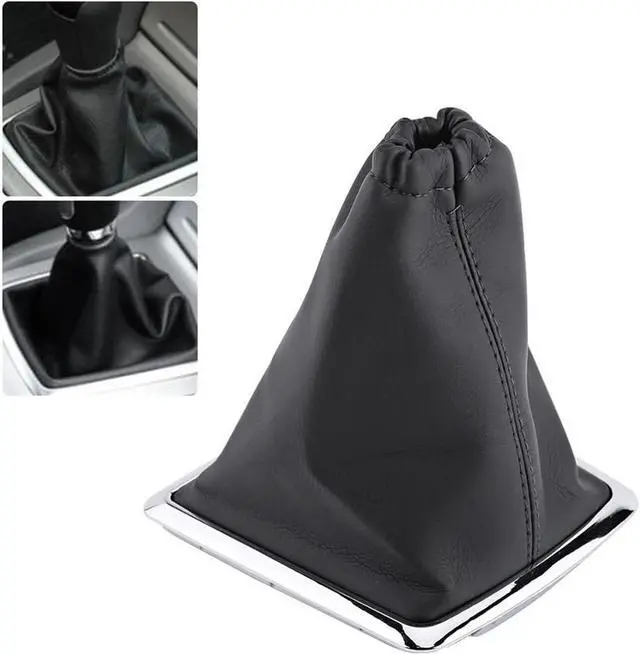 Gear Shift Knob Leather Gaiter Boot Cover Case Chrome Frame For Ford Focus MK2