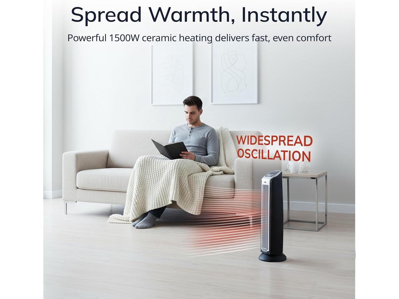 LASKO 5790 Black 1500W Electric Oscillating Ceramic Tower Space Heater with Remote