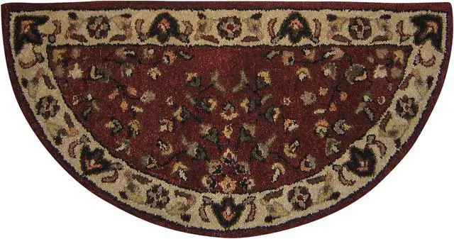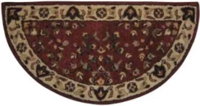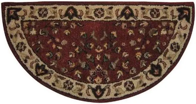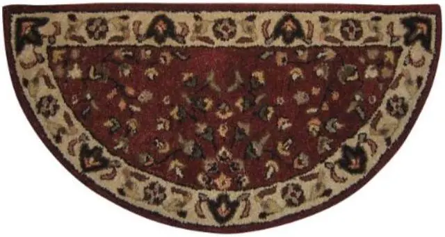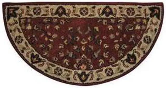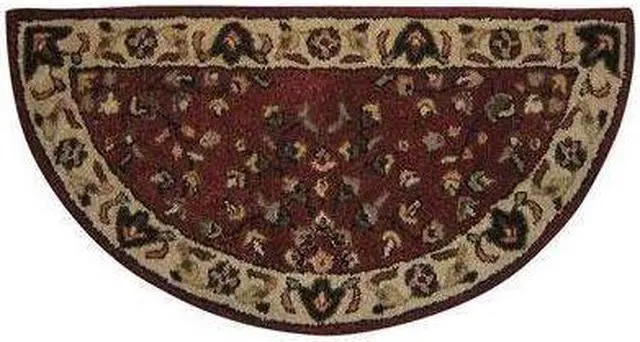 Uniflame Hand Tufted 100% Wool Hearth Rug with red inner and beige border 44" x 22" Half-circle.