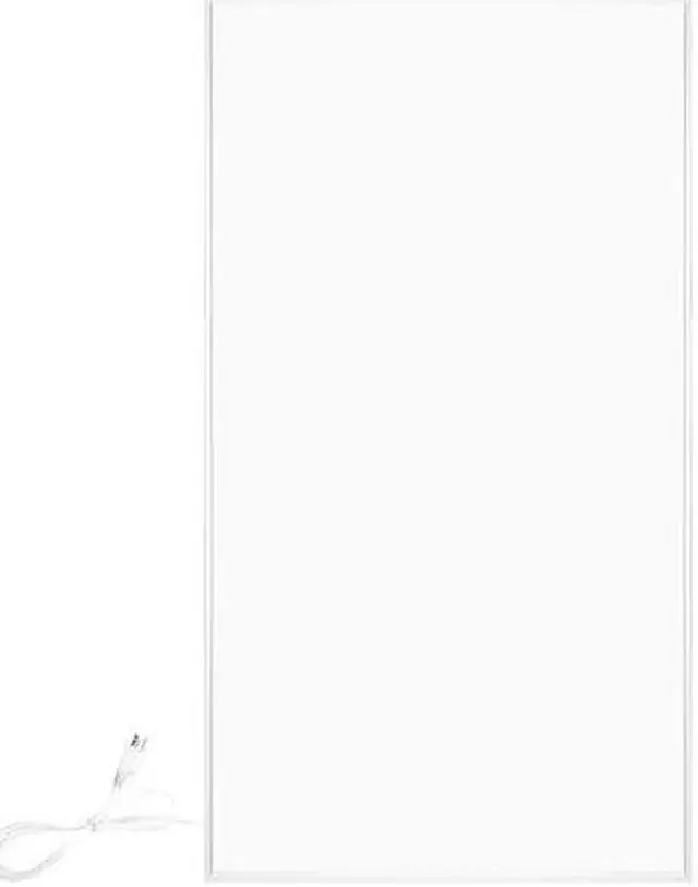 These panels are also dual connection, meaning they can be used as is to plug into a standard 120 VAC outlet or they can be modified by a licensed electrician to have a hardwired 120 VAC electrical connection. This panel is 47 by 24 and can be installed vertically or horizontally on your wall. Additionally, it can also be used horizontally with a low-profile stand accessory (sold separatelyfor plug-in models only) to create a movable heat source. This panel also comes with all of the hardware necessary to attach it to your ceiling. These panels are also unique in that they have one of the highest possible efficiency rates and consume the least amount of energy possible*.