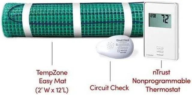 This kit also comes with a Circuit Check electric continuity alarm which will alert you if the heating cables are damaged during installation. Because there is no programming required for this dual voltage (120V/240V) control, you can just set it for your desired temperature and then sit back and relax. This elegant piece of wall-candy is perfect for high-traffic rooms, like the living room, where you want to keep the temperature at a consistent level throughout the day. Includes floor sensor.
